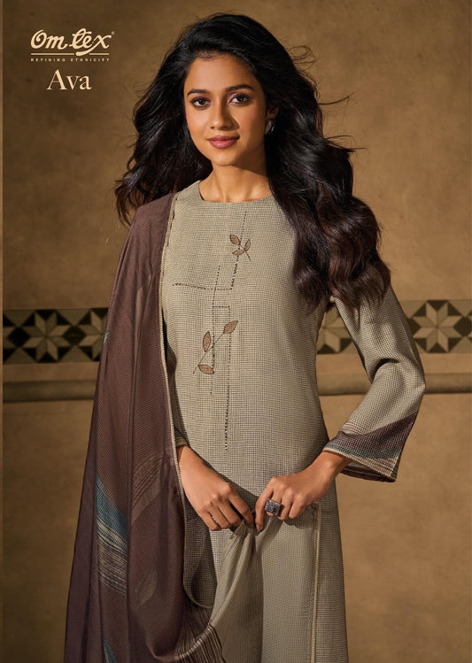 Ava Omtex Kashmeree Checks Pashmina Suits Supplier