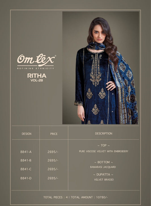 Ritha Vol 28 Omtex Pure Viscose Velvet Suits Wholesaler Gujarat