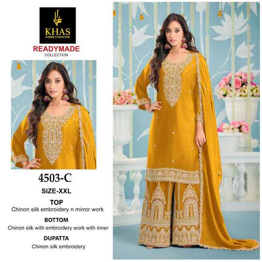 D No 4503 Khas Chinnon Silk Pakistani Readymade Suits Manufacturer India
