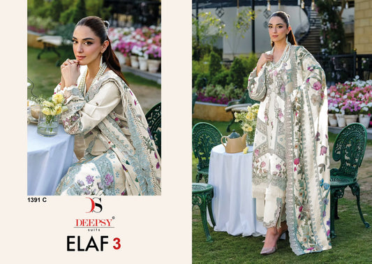 1391 Efgh Elaf 3 Deepsy Cotton Pakistani Patch Work Suits Wholesaler
