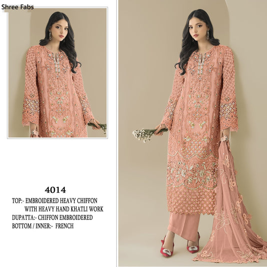 Sf 4014 Shree Fabs Chiffon Pakistani Salwar Suits Wholesale Rate