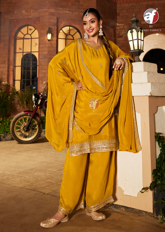 Elvira Gulkayra Designer Chinon Readymade Plazzo Style Suits Supplier Ahmedabad