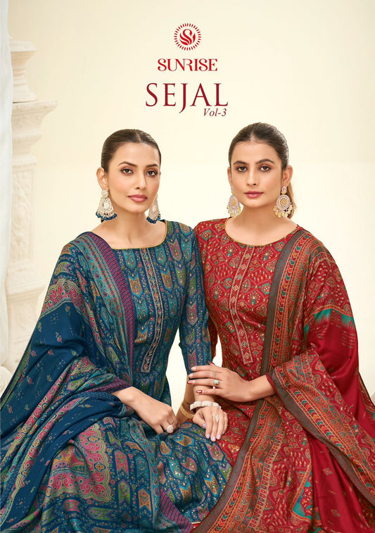Sejal Vol 3 Sunrise Viscose Simmer Pashmina Suits Exporter Ahmedabad