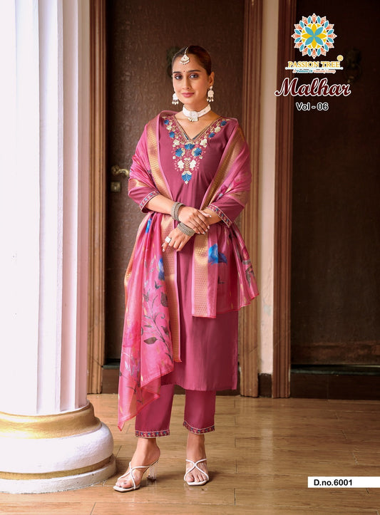 Malhar Vol 6 Passion Tree Roman Silk Readymade Pant Style Suits Wholesale