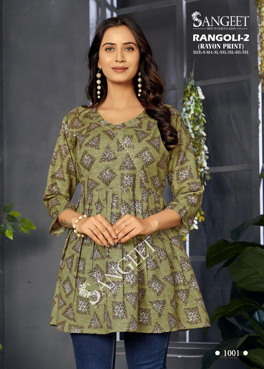 Rangoli 2 Sangeet Rayon Print Designer Long Top Manufacturer Ahmedabad