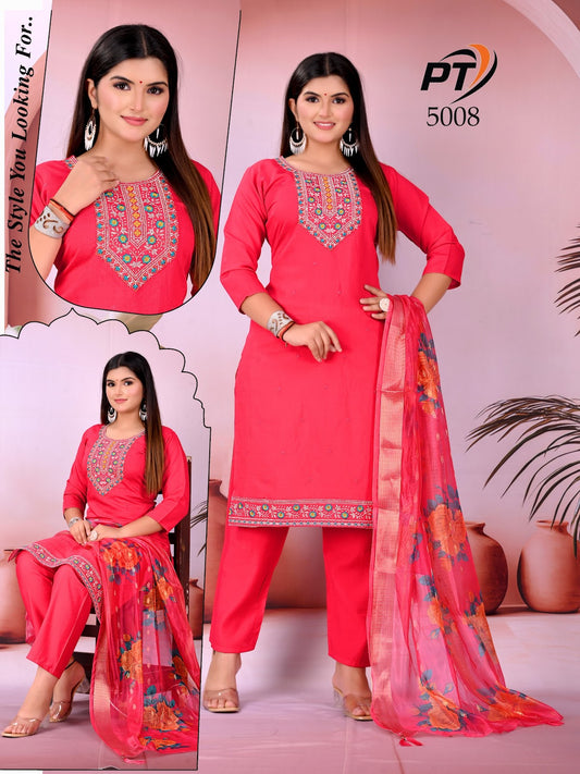 As a trusted wholesaler based in Ahmedabad, Gujarat, we supply Pt Readymade Suits at the lowest wholesale rates, helping boutiques, retailers, and online stores provide high-quality ethnic wear while maintaining strong profit margins.