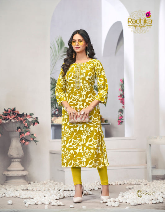 Alisha Vol 2 Radhika Lifestyle Liva Reyon Long Straight Kurti Wholesaler Ahmedabad