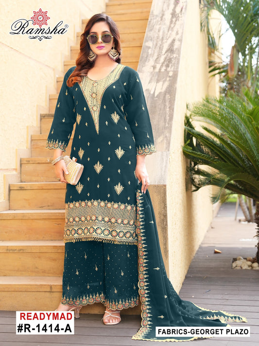 R 1414 Ramsha Georgette Pakistani Readymade Suits Manufacturer Gujarat
