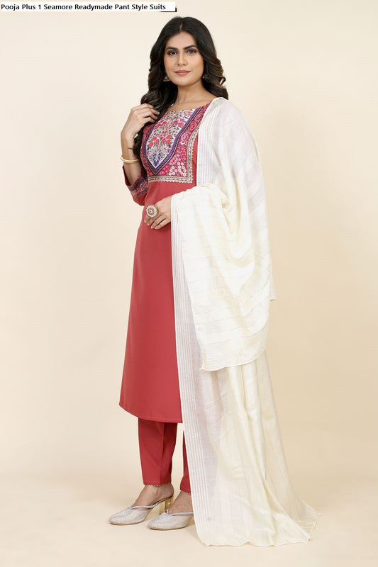 Pooja Plus 1 Seamore Crepe Readymade Pant Style Suits