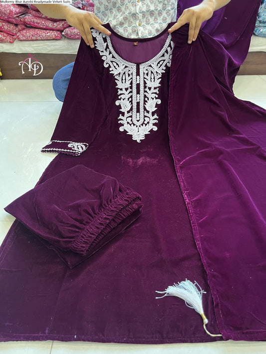 Mulberry-Blue Aarohi Readymade Velvet Suits