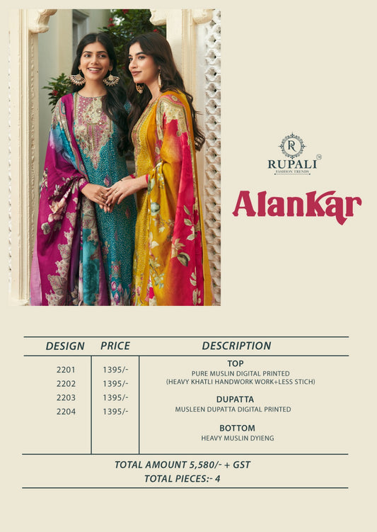 Alankar Rupali Pure Muslin Pant Style Suits Exporter