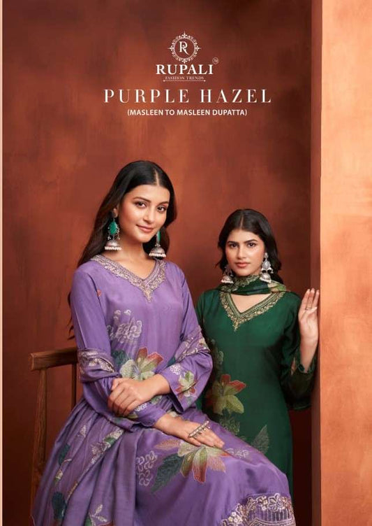 Purple Hazel Rupali Pure Muslin Pant Style Suits Wholesale Rate