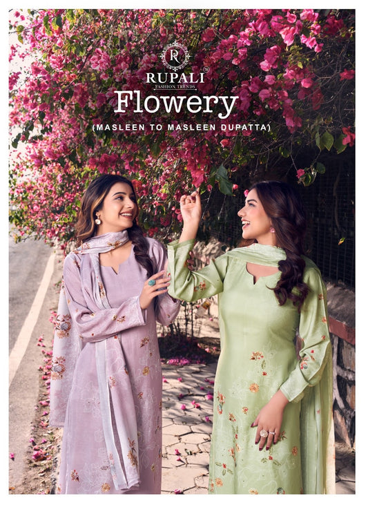 Flowery Rupali Muslin Pant Style Suits Supplier