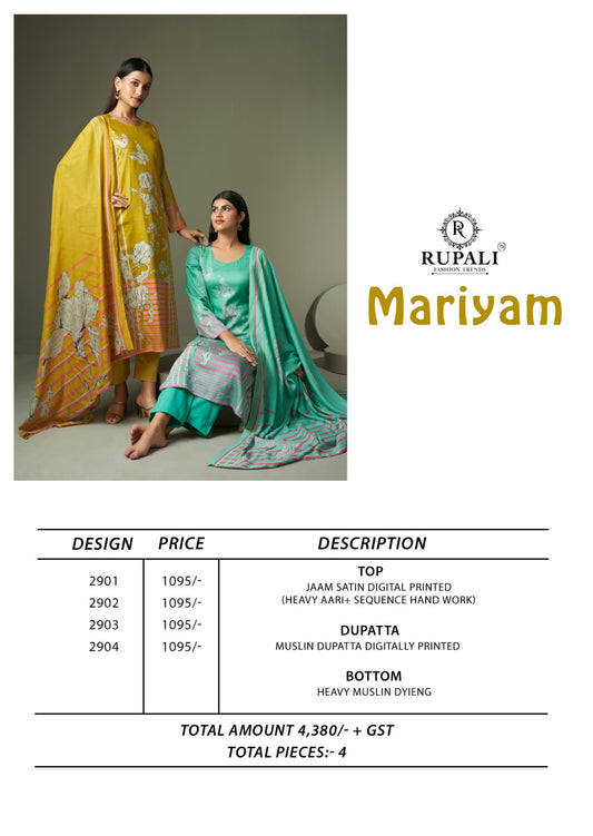 Mariyam Rupali Jaam Satin Pant Style Suits Manufacturer Ahmedabad