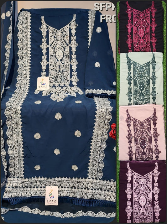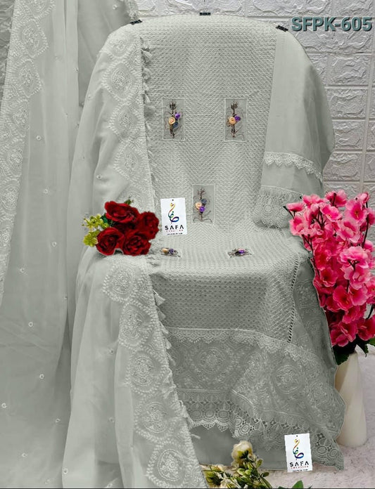 New-605 Safa Creation Georgette Pakistani Salwar Suits