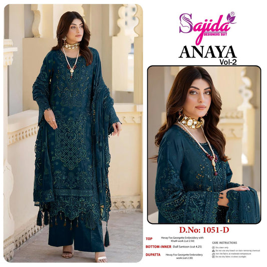 Dn 1051 Anaya Vol 2 Sajida Georgette Pakistani Salwar Suits Wholesaler Ahmedabad