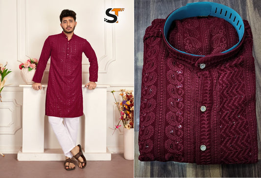 Chikan Work Salas Rayon 14Kg Mens Kurta Supplier Gujarat