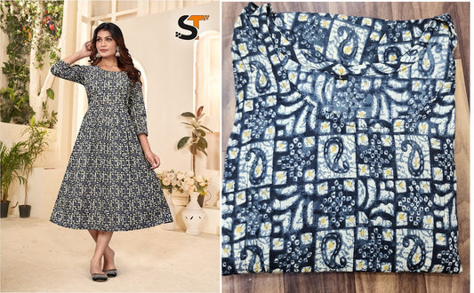 Design 01 Salas Crepe Designer Long Top Wholesaler Ahmedabad