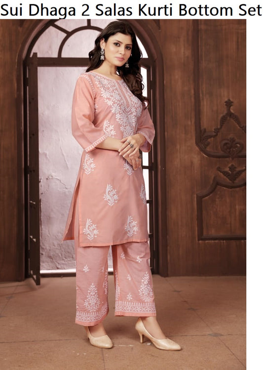 Sui Dhaga 2 Salas Cotton Kurti Bottom Set Wholesaler Ahmedabad