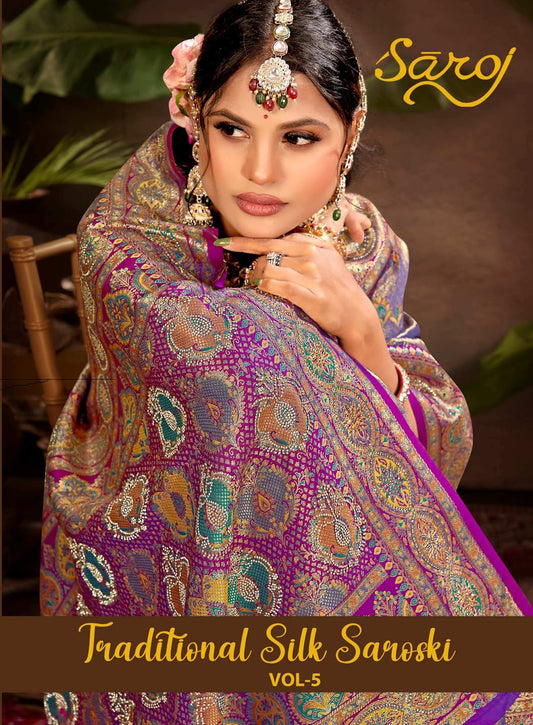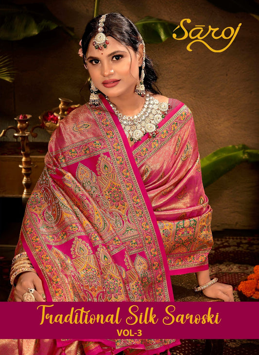 Traditional Silk Sarovski Vol 1 Saroj Tissue Sarees Exporter Gujarat