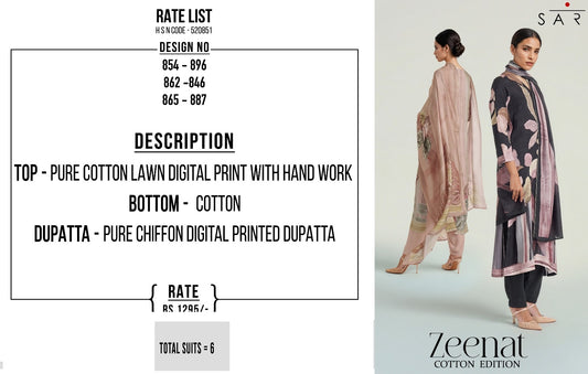 Zeenat Sarg Cotton Lawn Pant Style Suits Wholesaler