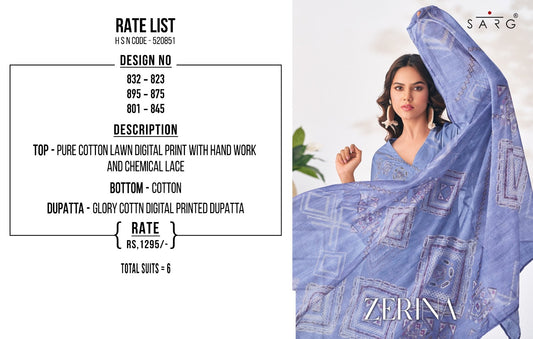 Zerina Sarg Cotton Lawn Pant Style Suits Supplier Gujarat