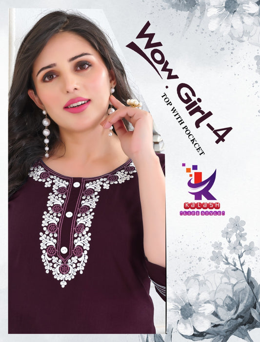 Wow Girl 4 Mlm Kalash Lifestyle Rayon 22Kg Short Kurtis Exporter Gujarat