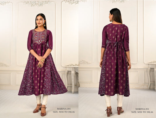 Yoke Work-2312 Qubo Rayon Cotton Kurti Pant Set