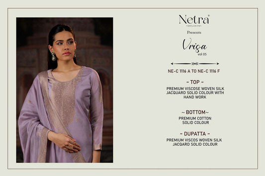 Vrisa Vol 5 Netra Premium Viscose Pant Style Suits Wholesaler Gujarat