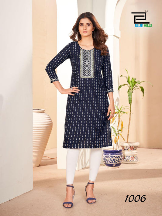 Royal Queen Blue Hills Rayon 14Kg Straight Cut Kurtis Manufacturer Ahmedabad
