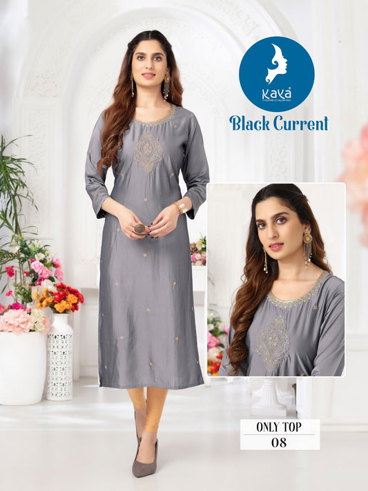 Black Current Kaya Viscose Silk Long Straight Kurti Supplier Ahmedabad