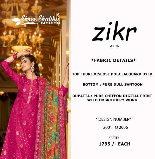 Zikr Vol 2 Shree Shalika Fashion Dola Jacquard Pant Style Suits