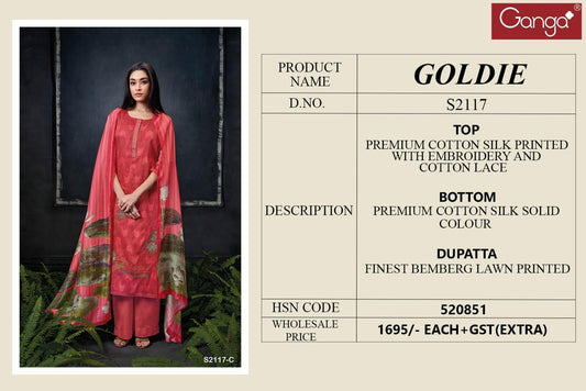 Goldie 2117 Ganga Cotton Silk Plazzo Style Suits