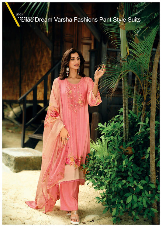 Lilac Dream Varsha Fashions Viscose Muslin Pant Style Suits Wholesale Price