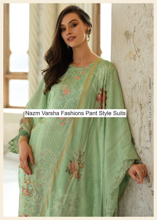 Nazm Varsha Fashions Viscose Muslin Pant Style Suits Supplier Gujarat