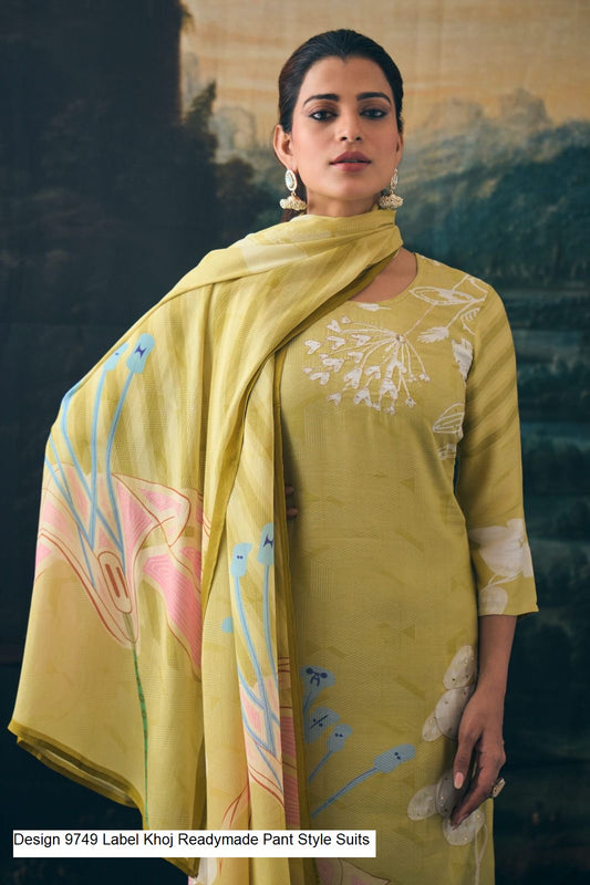 Design 9749 Label Khoj Pure Viscose Readymade Pant Style Suits Manufacturer India