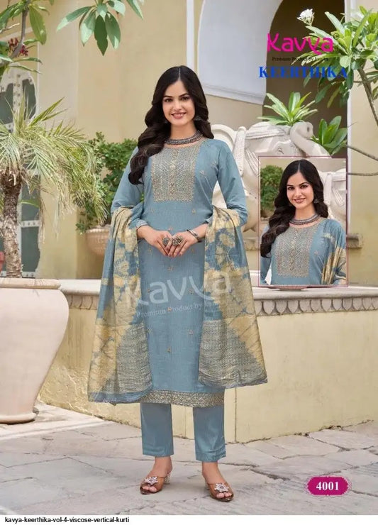Keerthika Vol 4 Kavya Viscose Readymade Pant Style Suits Supplier Gujarat