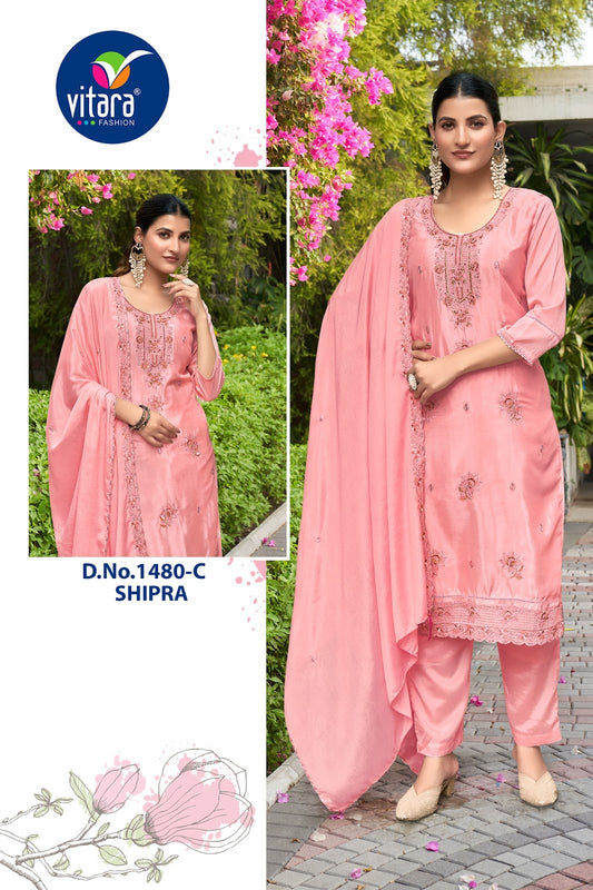 Shipra Vitara Chinon Readymade Pant Style Suits Exporter India