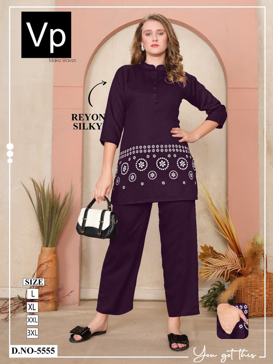 Design 5555 Vp Reyon Co Ord Set Wholesaler Gujarat