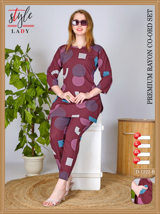 Design 1222 B Ladys Rayon Co Ord Set Wholesaler India