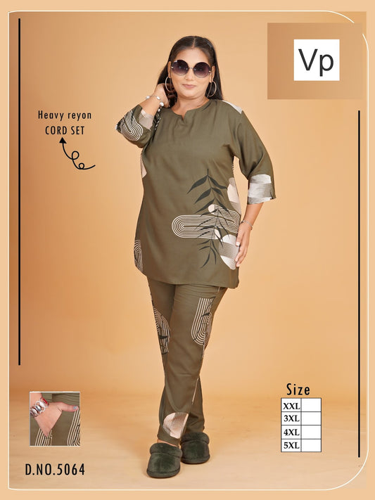Design 1222 Plus Size Ladys Rayon Co Ord Set Exporter India