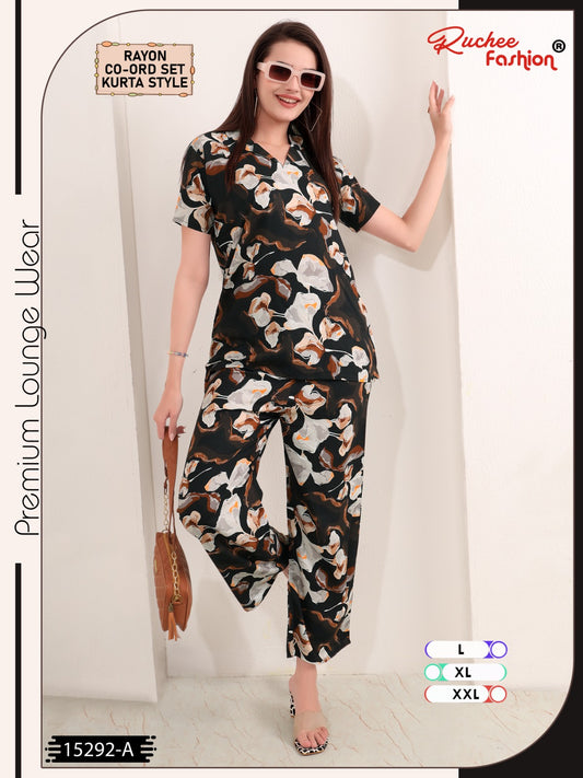 Design 15292 Ab Ruchee Fashion Rayon Co Ord Set Supplier Ahmedabad