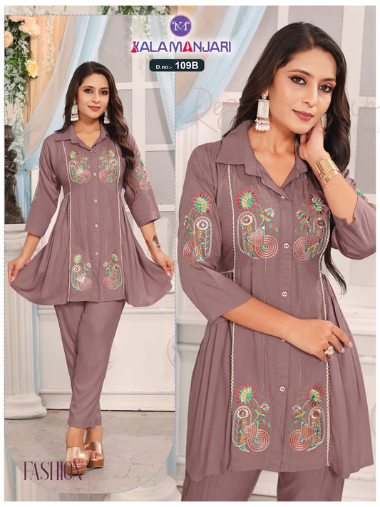 Km 109-110 Kalamanjari Karissa Viscose Co Ord Set Manufacturer India