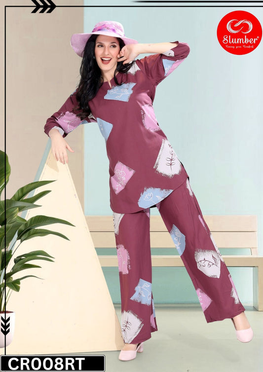 Cr008 New Colours Slumber Heavy Rayon Co Ord Set Manufacturer Gujarat