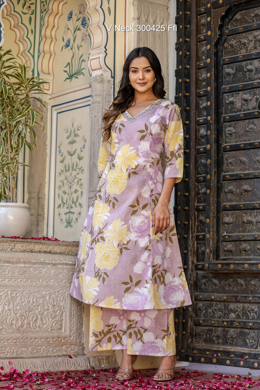 V Neck 300425 Ffi Cotton Co Ord Set Wholesale Rate