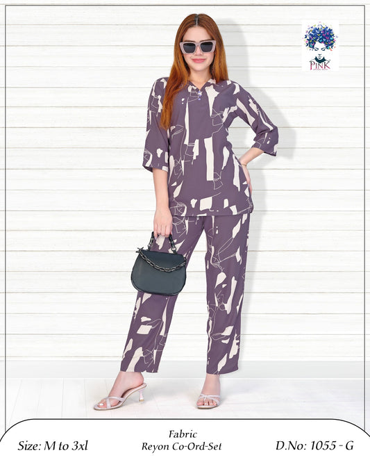 Design 1055 G Pink Reyon Co Ord Set Manufacturer