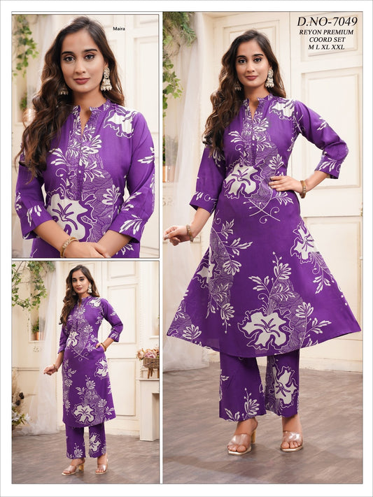Design 7047-7049 Maira Reyon Co Ord Set Manufacturer India
