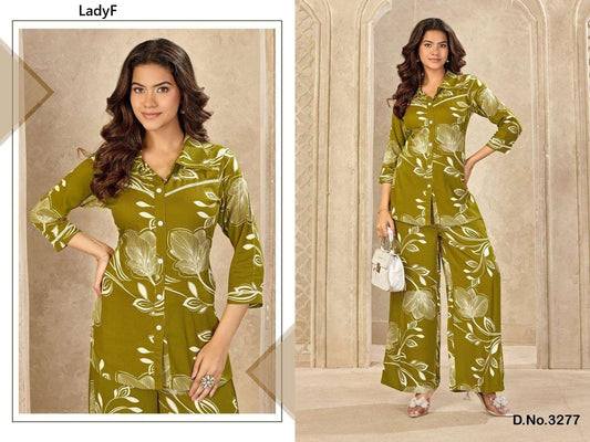 Design 3276-3277 Ladyf Rayon Co Ord Set Exporter Gujarat