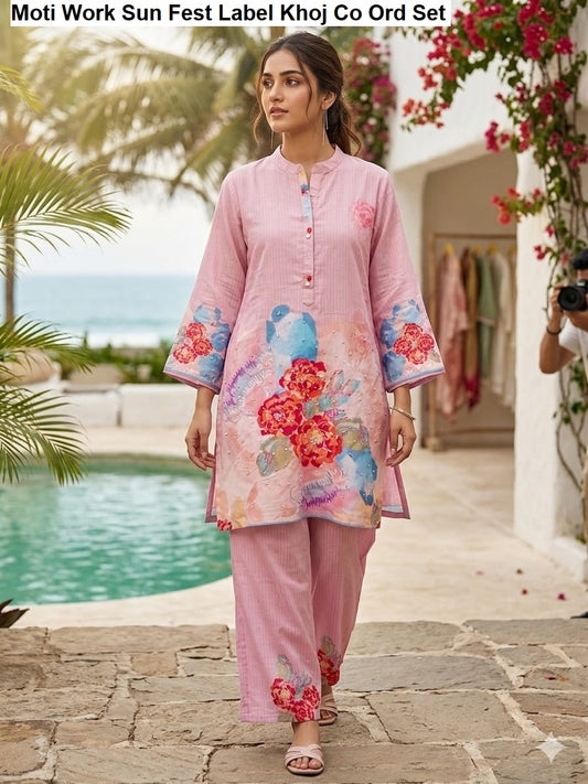 Moti Work Sun Fest Label Khoj Viscose Muslin Co Ord Set Wholesaler Ahmedabad
