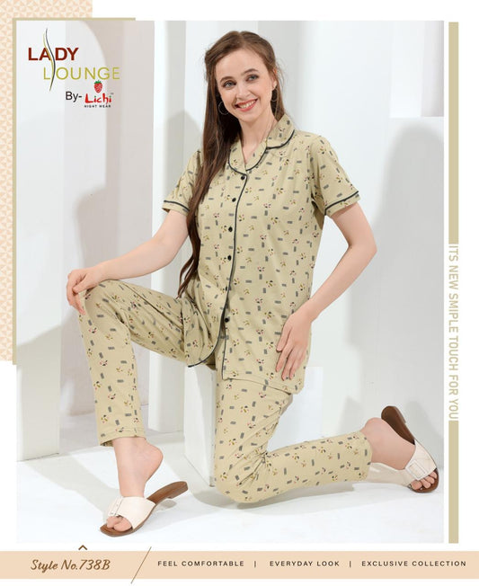 Style No 738 Lichi Hosiery Collar Night Suits Manufacturer